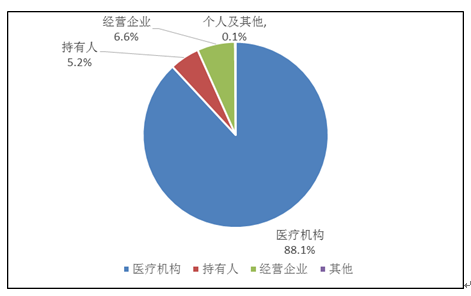 持有人、經(jīng)營企業(yè)和醫(yī)療機構(gòu)是藥品不良反應(yīng)報告的責任單位。按照報告來源統(tǒng)計,2019年來自醫(yī)療機構(gòu)的報告占88.1%;來自經(jīng)營企業(yè)的報告占6.6%;來自持有人的報告占5.2%;來自個人及其他報告者的報告占0.1%(圖3)。