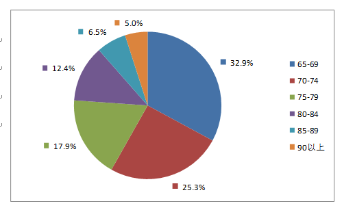 2019年老年患者藥品不良反應(yīng)/事件報告中,男女患者比為0.95:1。老年患者年齡分布中65-69歲老年患者報告占32.9%,70-74歲老年患者報告占25.3%(圖15)。